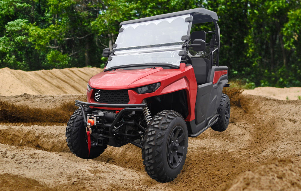 UTVen er registrert for to personer og kan kjøres av personer med bilsertifikat og traktorlappen (16 år). Basismodellen passer for deg som ønsker mest mulig kjøreegenskaper og et åpent førerhus.