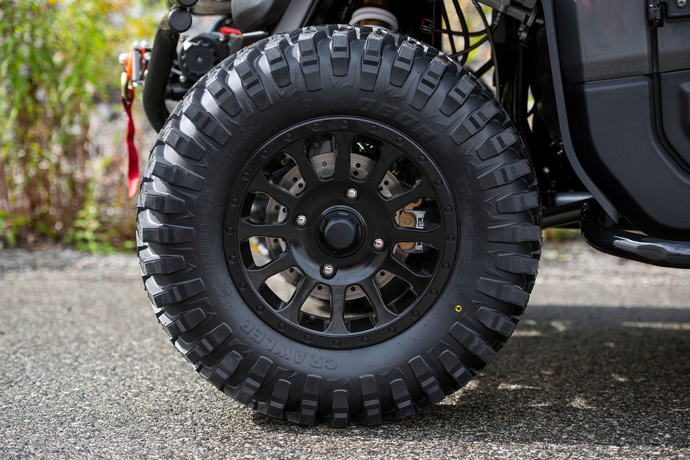 I tillegg er hjulene plassert i ytterkant slik at kjøretøyet på enkel måte klatrer over store hindringer.