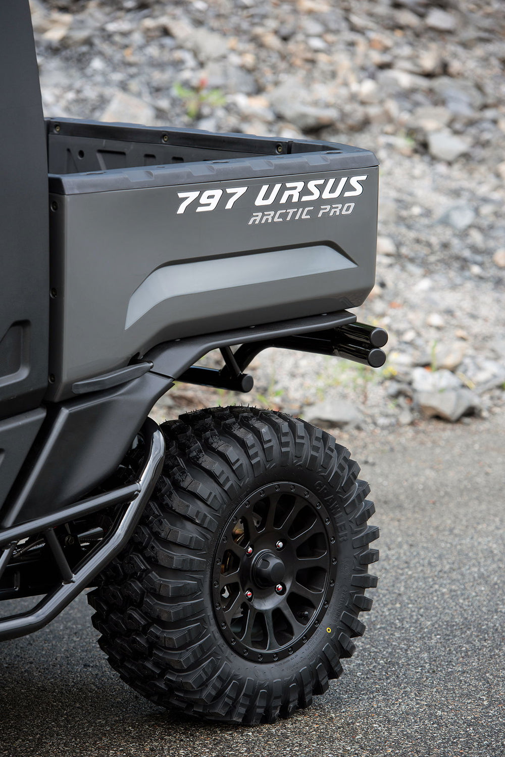Med markedets desidert høyeste bakkeklaring, på 31,7 cm, er 797 Ursus Arctic Pro det perfekte kjøretøy for turer ut i naturen. Du kan bruke den til jakt da den har god plass til viltet på lasteplanet. UTVen er førstevalget til oppgaver rundt gården; i frukthagen, til vedhogst, tilsyn av dyr eller på jordet og gartneri.