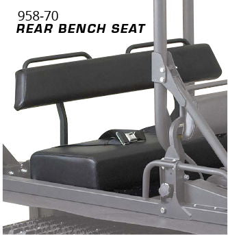 Frame mounted, forward facing rear bench seat provides additional seating for 2 passengers. The bench seat can be removed quickly, without tools, to gain unrestricted access to the rear cargo area.