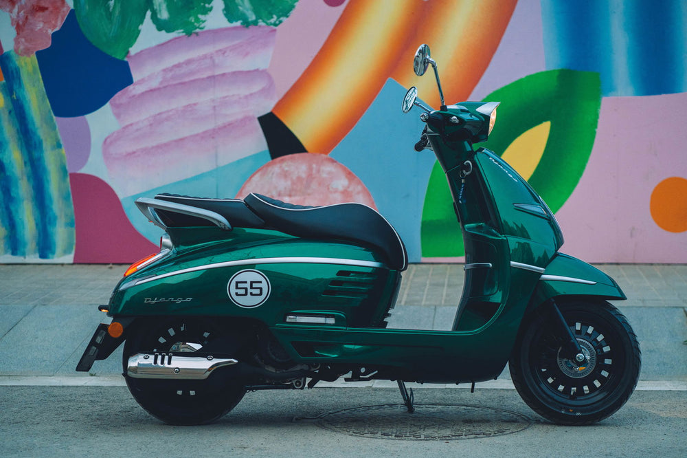 I sin Sport-versjon hyller Django den sportslige fortiden til Peugeot, som vant de største konkurransene på 2 hjul, inkludert den legendariske Bol d'Or i 1953. 4-takt EUR 5 motor og elektronisk injeksjon gir rask start for enkelt å komme ut av trafikken. DESIGN Karosseriet er enestående i stil med en nøytral fargetone, sportsklistremerker, grå skallspeil og passasjersetedeksel. Løven som er plassert i midten av den store grillen, er innrammet av en permanent og unik LED-lyssignatur. En unik personlighet, en stil kun på Peugeot Django. Ønsker du å kjøre på en mystisk og sporty scooter, er denne perfekt for deg.