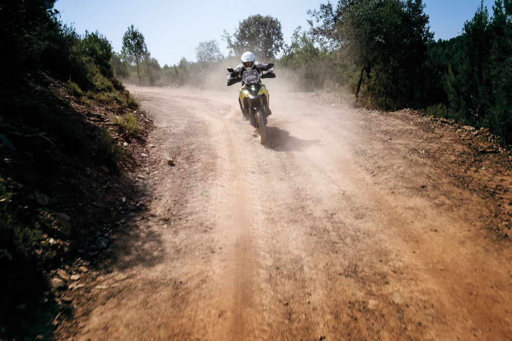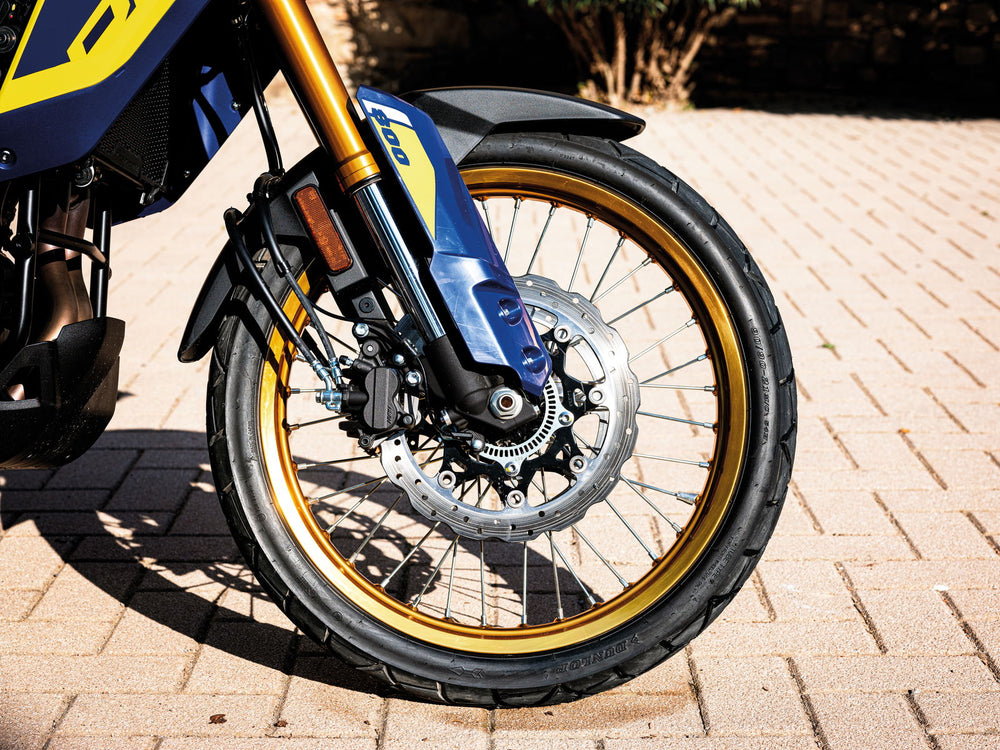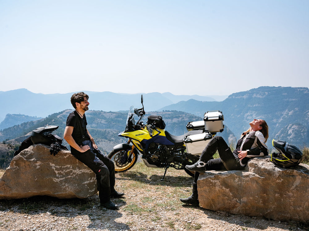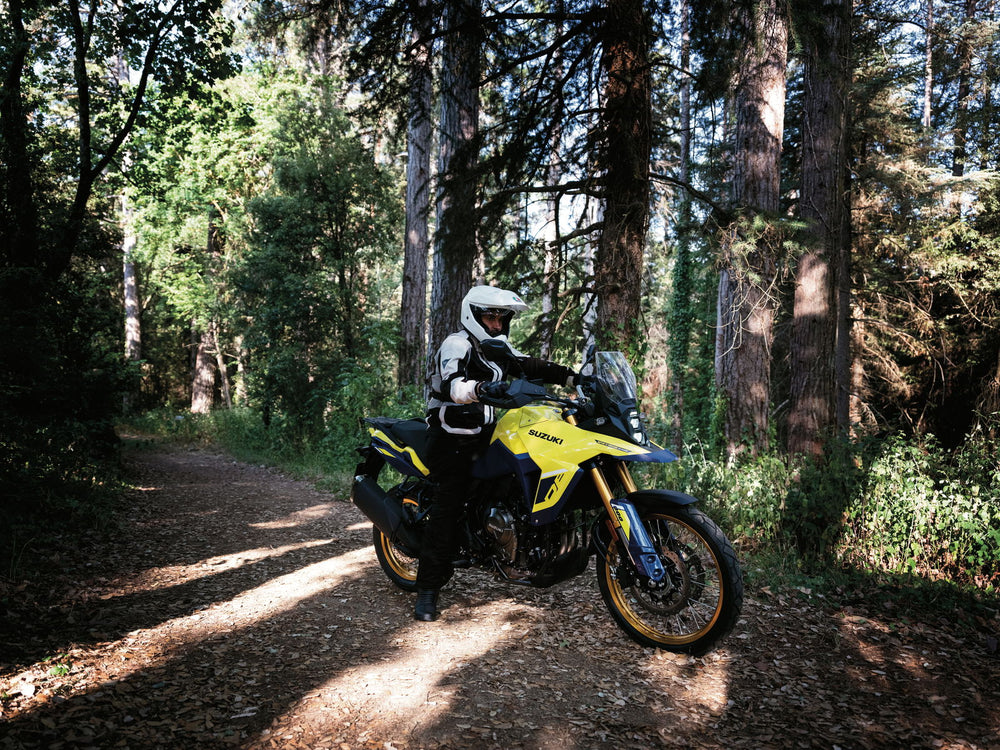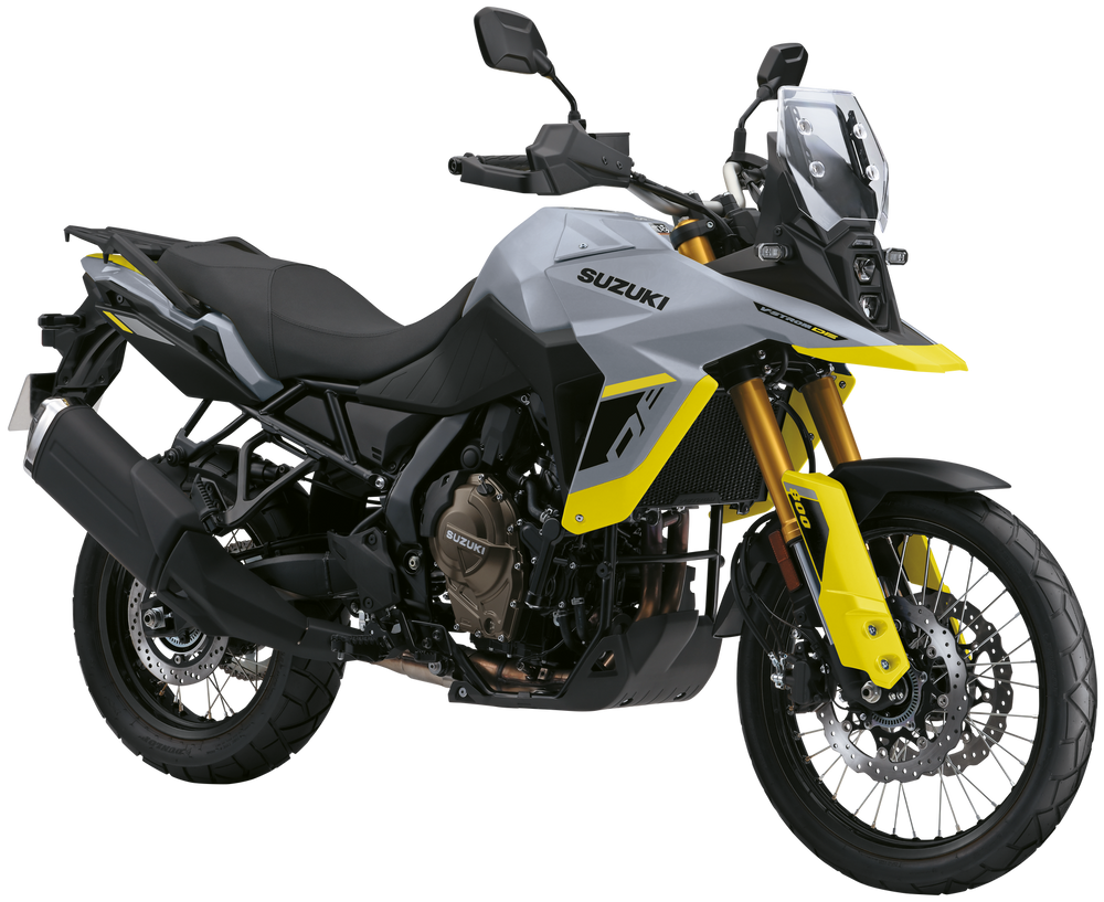 En hel MC-verden ventet i stor spenning på avdukingen under høstens MC-messe og ingen ble skuffet: Nye V-Strom DL800 DE innfridde på absolutt alle områder! Den fremstår som et av de aller beste alternativene i den mellomstore adventure-klassen. Aldri før har Suzuki produsert en så offroadorientert motorsykkel under V-Strom-fanen. Med et helt nytt chassis og en helt ny plattform presenteres nye Suzuki V-Strom DL800 DE. Med et lekkert retroinspirert design og alle de riktige komponentene som entusiasten krever vil V-Strom DL800 DE gi store doser motorsykkel for pengene. Her trenger du ikke sprenge rammelånet for å oppfylle adventuredrømmen – mer lykke for pengene skal du nemlig lete lenge etter for å finne! Her har offroadentusiasten alt han drømmer om: En momentsterk parallell-twin-motor, et chassis med den beste bakkeklaringen noensinne, lang og fullt justerbar støtdemping, eikefelger med Dunlop Trialmax Mixtor-dekk, ultramoderne TFT-display, den aller mest moderne teknologien for hjelpeprogram og alt det tilbehøret du trenger for drømmereisen! Legg til egen grusmodus i Suzukis klasseledende hjelpesystem, muligheten for utkobling av ABS på bakhjulet, en 20 liter stor drivstofftank og ypperlige originalkofferter (tilbehør), så er du pakket og klar for eventyr på både fast og løst underlag – enten innenlands eller utenlands. V-Strom-begrepet er et av de virkelige ikonene innen adventuresegmentet, vi kjenner allerede til 650 og 1050. Snart er det 20 år siden den første modellen så dagens lys. Til 2023 presenterer Suzuki den mest rendyrkede modellen noen sine for grusentusiasten. V-Strom DL800 DE er en motorsykkel som treffer entusiasten rett i hjertet med sitt helt korrekte design og sine perfekt sammensatte komponenter. Her får du både den kraften, de kjøreegenskapene, den teknologien og det designet du er ute etter. Kjøreopplevelse har vært sentral da Suzukis Adventure-avdeling satte seg ned for å designe nye V-Strom DL800 DE Adventure helt fra begynnelsen. Kvalitetene er i toppklasse både på løst og fast underlag. V-Strom DL800 DE er klasseledende på spesifikasjonene når det gjelder støtdempere og de vitale chassismålene. Showa-demperne er fullt justerbare, noe som tidligere ikke har vært standard i denne klassen. Og hvem vil ikke ha alle justeringsmuligheter på en slik allsidig motorsykkel som har et så bredt bruksområde? V-Strom DL800 DE er like kapabel for langtur med passasjer og kofferter, som for en rampete singletur i skogen. Med riktig innstilling av forspenning, kompresjon og retur løser V-Strom alle utfordringer! 220 millimeter arbeidsvei på både forgaffel og bakdemper, samt en bakkeklaring som er like lang: 220 millimeter. Det viser at Suzuki mener alvor når de kaller V-Strom 800 DE for den mest grusorienterte V-Strom-modellen noensinne. Alt ligger til rette for å sluke raske mil på grusen. Nye V-Strom DL800 DE har det absolutt nyeste av kjøre- og hjelpeprogrammer fra Suzuki som standard. Suzuki Intelligent Ride System (S.I.R.S.) hjelper føreren med å optimalisere ytelsene for å tilpasse kjørestil etter kjøreforholdene. Dette gjør V-Strom 800 mer kontrollerbar, mer forutsigbar og morsommere på stien, på en svingete vei eller på tur på motorveien. Det gir mer trygghet og en bedre kjøreopplevelse. Føreren kan velge en av fire moduser eller å deaktivere traction control-systemet helt. De fire aktive modusene er forskjellige når det gjelder spinnfølsomhet på bakhjulene. Det handler mye om hvor raskt systemet skal gripe inn. Eller om det skal gripe inn overhodet: Modus 1 er den laveste følsomheten som tillater en viss grad av bakhjulsspinn og er best egnet for gode veiforhold. Modus 2 er et moderat følsomhetsnivå. Systemet aktiverer traction control raskere enn Modus 1 og er for gjennomsnittlige veiforhold. Modus 3 er det høyeste følsomhetsnivået. Systemet aktiverer traction control raskere enn de andre modusene for å eliminere hjulspinn, og er for dårlige eller glatte veiforhold, som våte og kalde underlag. Grusmodus (G) er en ekstra traction control-innstilling som forsinker tenningstidspunktet for å gjøre gruskjøringen optimal og underholdende. OFF kobler ut alle traction control-funksjoner. Her har føreren har selv kontroll over motorens gass og eventuelt bakhjulsspinn. Suzuki Intelligent Ride System inkluderer også Bi-directional Quick Shift System som standard, som den første modellen i dette segmentet. Systemet gir føreren muligheter til å gire både opp og ned uten å bruke clutch eller slippe gassen. For å sikre jevne oppgiringer, avbryter Quick Shift-systemtet automatisk krafttilførselen akkurat lenge nok til å produsere jevn, nesten uavbrutt akselerasjon. Anti-lock Brake System (ABS) bidrar til mer stabil bremsing ved å forhindre at hjulene låser seg, selv under hardt bremsing. Systemet på V-Strom har to modusinnstillinger, hvor Modus 1 gir minimal inngripen, og dermed er ypperlig på grusveier. Modus 2 er ideell for bykjøring og vanlige veiforhold – gjerne på asfalt. Føreren kan dessuten bruke Rear ABS Cancel-modus for å slå av ABS bak, og dermed få full kontroll på bakhjulet under offensiv gruskjøring.