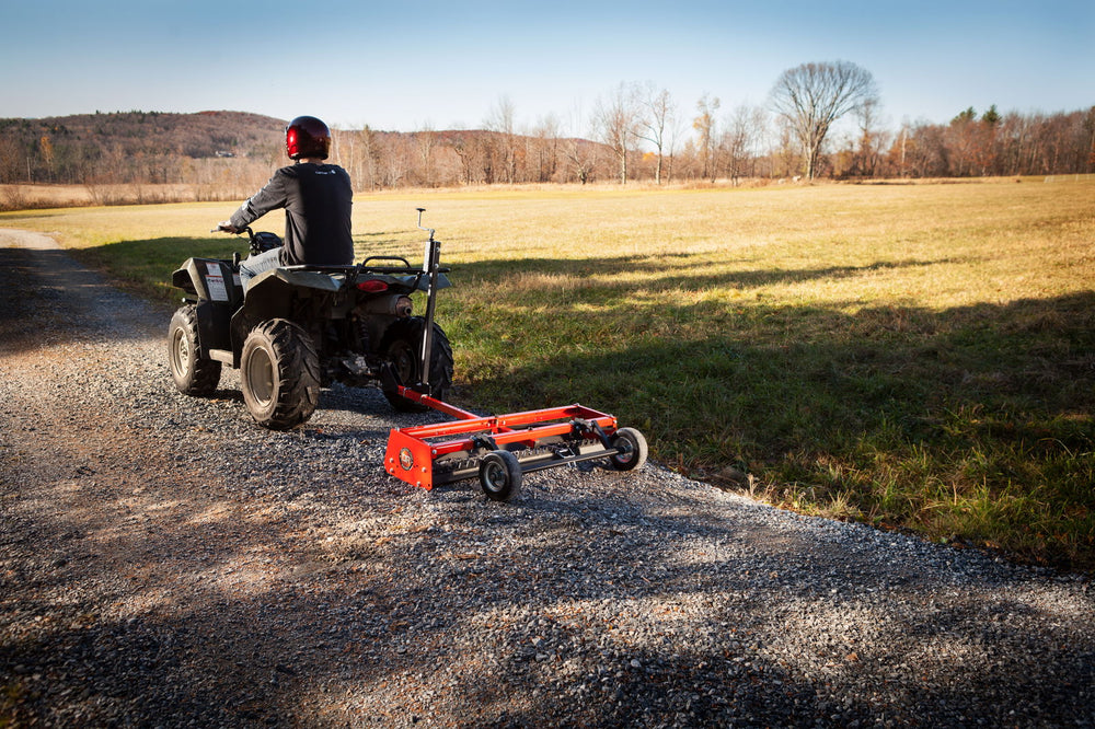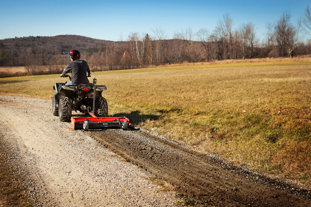 Dette er en veihøvel som er beregnet til å trekkes bak din ATV. Den har dybde-regulatoren lett tilgjengelig slik at du kan finjustere graderingsdybden uten å forlate førersetet. Dette er en kompakt høvel med et design som tar opp lite gulvplass ved lagring. DR veihøvel har kraftige karbid tenner og utjevner underlaget med skraperbladet for å tette hull og planere vaskebrett. Kjetting drag finnes som ekstra utstyr til denne modellen som er perfekt til bruk inne til ridebaner osv. Vare.nr. DRPG21148XXNC Skrape bredde 123 cm Vendbart graderingsbord med tann eller flat kant