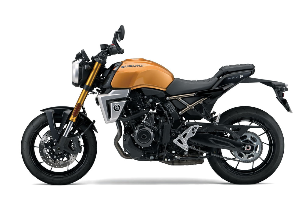 To match the overall vehicle concept, the GSX-8T/8TT feature engine side covers