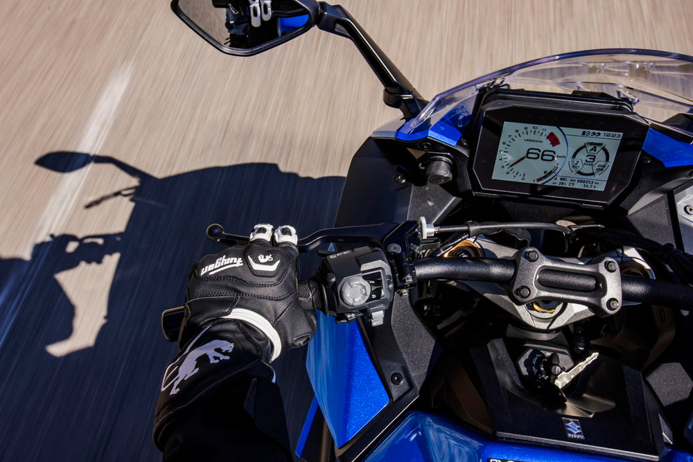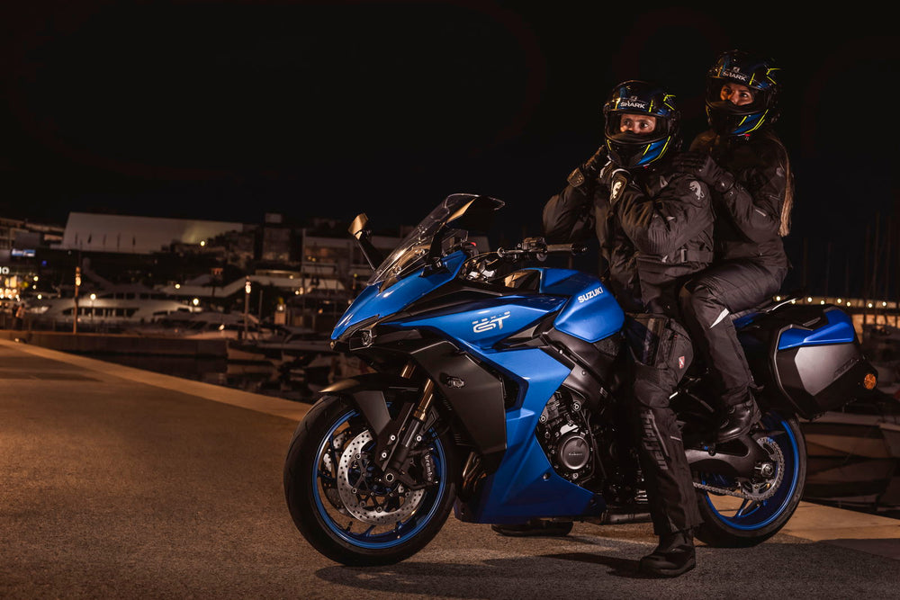 En helt ny generasjon Suzuki tilfører Grand Touring-begrepet nye dimensjoner med GSX-S1000GT. Aldri før har verden sett en så lettkjørt, sportslig og høyteknologisk tourer som nye Suzuki GSX-S1000GT. Suzuki har lykkes med den nesten umulige oppgaven: Nemlig å kombinere komfortabel touring med sportslige kvaliteter og hverdagskjøring i nye GSX-S1000GT. Den nye allrounderen har egenskaper både til småkjøring i nærområdet og til de virkelig lange reisene. Uansett hva du liker, så står GSX-S1000GT til din tjeneste. Om du foretrekker høyhastighetsreiser nedover Europa, offensiv kjøring i svingene på favorittveien der du bor, pendling til arbeidsplassen eller rett og slett en kjapp kosetur ut for å nyte sommervarmen – GSX-S1000GT er en ekte allrounder som leverer på alle områder. Motoren på 999 kubikk røper at det er mye sport og ekstreme krefter i nye GSX-S1000GT. Utgangspunktet for den helt nye sportstoureren er motoren fra den legendariske sportssykkelen GSX-R1000. I GSX-S1000GT er motoren tunet og modifisert for å tilfredsstille kravene til rask landeveiskjøring, gjerne med passasjer og med bagasje. Kreftene i nedre deler av effektregisteret og dreiemomentet er prioritert. Men det har ikke gått på bekostning av den morsomme motorkarakteren som GSX-serien er kjent for. GSX-S1000GT har krefter til å underholde selv den mest kravstore motorsyklisten. Suzuki har minimalisert motorvibrasjoner i nye GSX-S1000GT. Det er en betydelig fordel for komforten på de lange turene. Vibrasjoner i styre er betydelig redusert sammenliknet med en sportssykkel. Det gir muligheter for lange og komfortable dager på veien. I tillegg har Suzukis aerodynamikk-ingeniører lagt ned et betydelig arbeid for å gi fører og passasjer best mulige forhold i høye hastigheter. Uendelig antall timer i vindtunellen har gitt optimal aerodynamikk og fantastiske egenskaper. Små detaljer har gitt store utslag. Utfordringen med denne oppgaven er ofte at smarte aerodynamiske grep går utover designet. Men her har Suzuki åpenbart gjort en fin jobb med nye GSX-S1000GT som har moderne og fine linjer. Den nye GT-modellen er utstyrt med Suzukis Intelligent Ride System (SIRS), som inkluderer Suzuki Drive Mode Selector (SDMS), Traction Control, Ride by Wire Electronic Throttle, Bi-directional Quick Shift, Suzuki Easy Start og Low RPM Assist systems. Samlet gir disse systemene et svært godt utgangspunkt for en trygg og komfortabel reise. GSX-S1000GT er den første Suzukien med en ny generasjon 6,5 tommers farge TFT LCD multi-informativ antireflekterende skjerm, som er utviklet spesielt for MC. Den har egne profiler for ulike lysforhold og det åpner seg et nytt univers for den som er villig til å utforske innholdet og mulighetene. En annen fremtredende funksjon er smarttelefon-tilkobling som gir deg tilgang til en rekke apper og funksjoner som gjør din MC-reise både mer effektiv, mer underholdene og mer morsom. Her er det bare å installere den gratis SUZUKI mySPIN-appen og koble sammen smarttelefonen for å overføre skjermen til GTs store TFT LCD-skjerm i full farge. Da viser skjermen kontakter, kalender, musikk og for eksempel kartapper som du har installert på din smarttelefon. SUZUKI mySPIN er kompatibel med iOS og Android ™. Suzuki har laget en hel rekke originalt tilbehør til nye GSX-S1000GT. Her finner du 36 ulike alternativer – fra kofferter til større vindskjerm. Det er mulig å tilpasse GT-modellen nøyaktig etter dine personlige stil og krav.