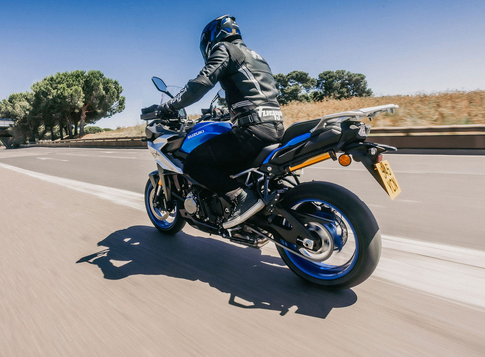 Å kombinere sportslighet med komfort for kjøring på ujevnt underlag er kanskje en av de største utfordringene MC-produsentene møter når de skal skape en ny modell. Og det er nettopp her Suzuki har lykkes så godt: Den vellykkede kombinasjonen med ekstreme sportsytelser og lang fjæringsvei gir optimale kjøreegenskaper under alle forhold og på alle typer veier.