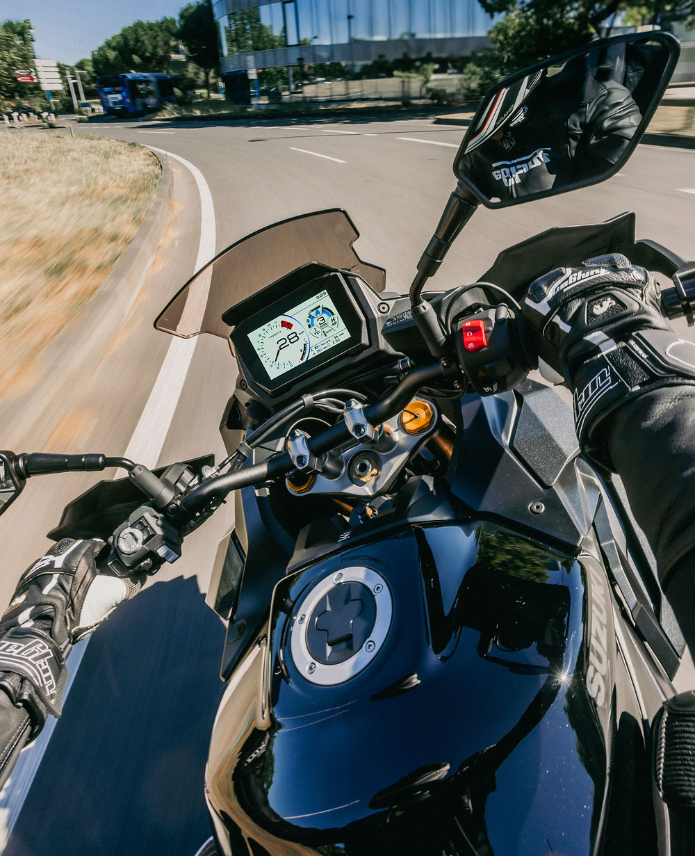 For første gang på en GSX-S-modell tar Suzuki i bruk 6-akslet Bosch IMU. Denne datahjernen og sensoren har både akselerometer og gyroskop, og gjør flere hjelpesystemer mulig, deriblant bakhjulskontroll (Lift Limiter), aktiv støtdemping (Active Damping Control) og sving-ABS-kontroll (Motion Track Brake System).