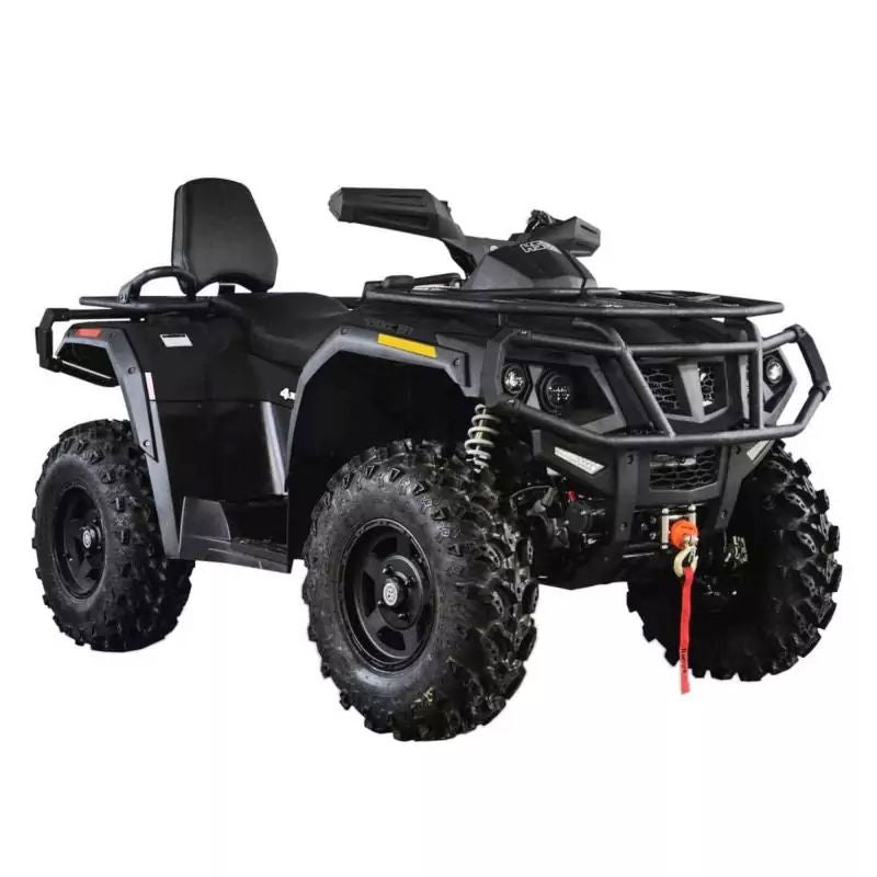 HS550 LC ATV er enkel å kjøre og har god ytelse som passer til bruk på gården eller for pendling til og fra jobb. HS550 har CVT automatgir, 4 x 4 høy og lav-serie, uavhengige fjæringer og differensialsperre. Den er utstyrt med 12” stålfelger, hengerkontakt, kufanger foran og bak samt sidespeil. Til sammen betyr dette fantastisk fremkommelighet! HS550 LC er traktor-registrert og kan derfor kjøres på vei. Arbeidsoppgavene blir enklere når man får hjelp av en Hisun ATV til å utføre jobben! Med tilhenger og/eller plog får du ytterligere bruksmuligheter. Den leveres med ryggstøtte for passasjer, 5 års garanti for både privat og næring.