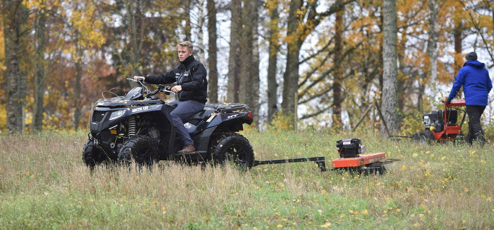 Hekt Gresstrimmeren PRO XLT 7,25 bak på din ATV/UTV eller hagetraktor. Gresstrimmeren er konstruert til bruk på ujevnt underlag og er tilpasset klipping ved gjerder, løyper, grøfter etc. Gresstrimmeren er fjærbelastet og dermed helt genial til å klippe helt inntil gjerder og andre kanter slik at uønskede gresstuster ikke står igjen. Gresstrimmeren har tre innstillinger og Offset-instillingen på 1,8 m gir deg større radius for å klippe og kutte i grøfter og skråninger lengre ut enn du normalt kommer til. Denne brede utførelsen av trimmerhodet forhindrer også at gress og ugress tettpakkes under klippepannen. DR trimmerene bruker fleksible og tykke nylon tråder som er utrolig robuste og lette å bytte ut med sitt Quick-lock-system. PRO XLT 7.25 har snorstartet Briggs & Stratton EXI OHV motor.