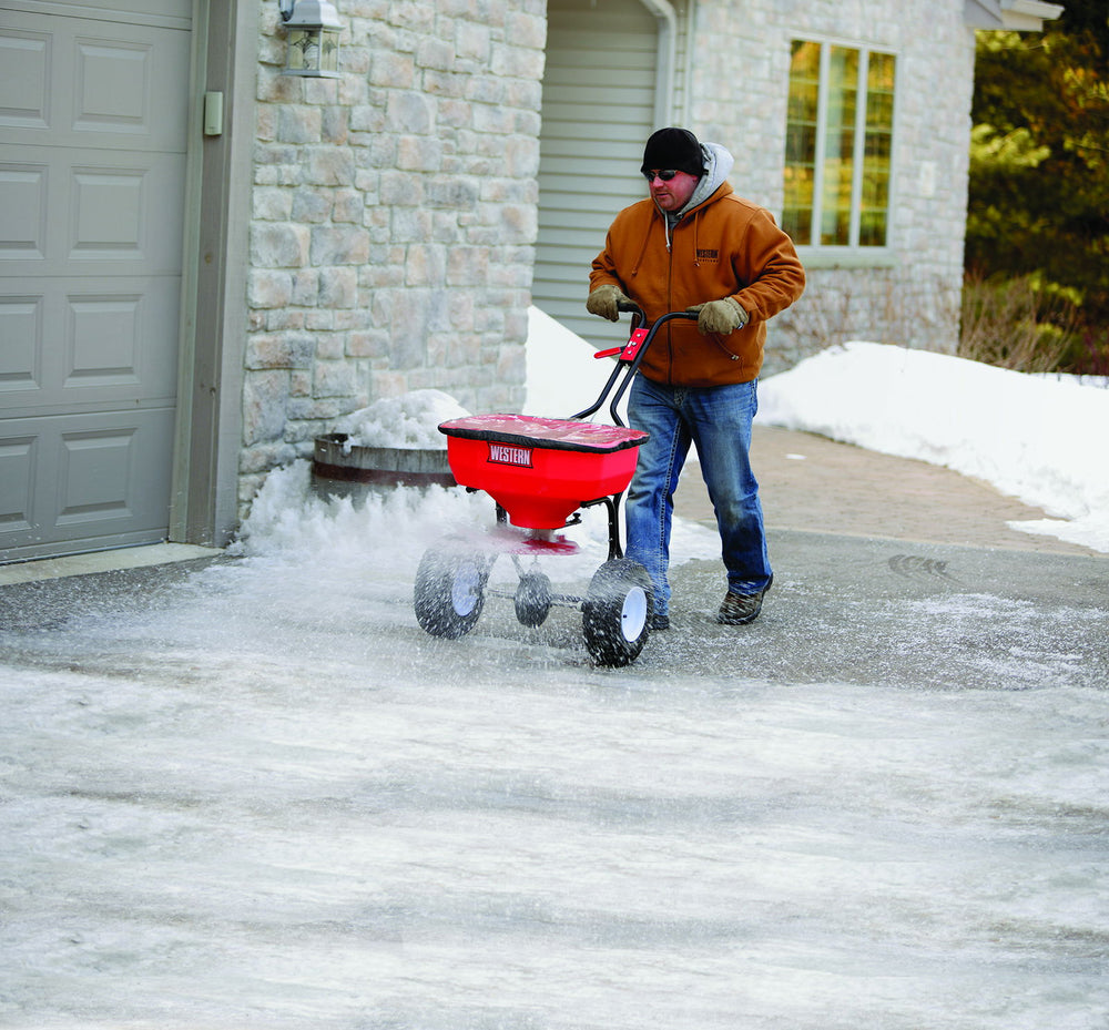 Western® sin manuelle spreder er konstruert av robust, korrosjonsfri polyetylen. Denne håndtere de fleste is-smeltematerialer. Sprederen kommer standard med et gjennomsiktig trekk som holder trauet tørt og du kan enkelt se hvor mye som er igjen i trauet. Spreder WB-100B har en 25 cm tallerkenformet spreder som gir et spredningsmønster på opptil 6 meters bredde. Varenr. WE85101
