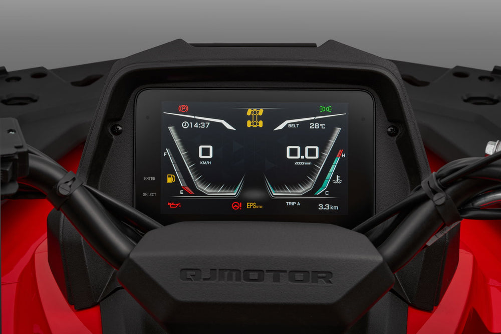 Designet på selve ATVen er moderne og linjelekker. I en ATV fra QJ Motor får du en innovativ 5" LCD-skjerm. USB-C og USB-uttak for tilkobling og lading av elektronisk utstyr som telefon, GPS eller laptop.