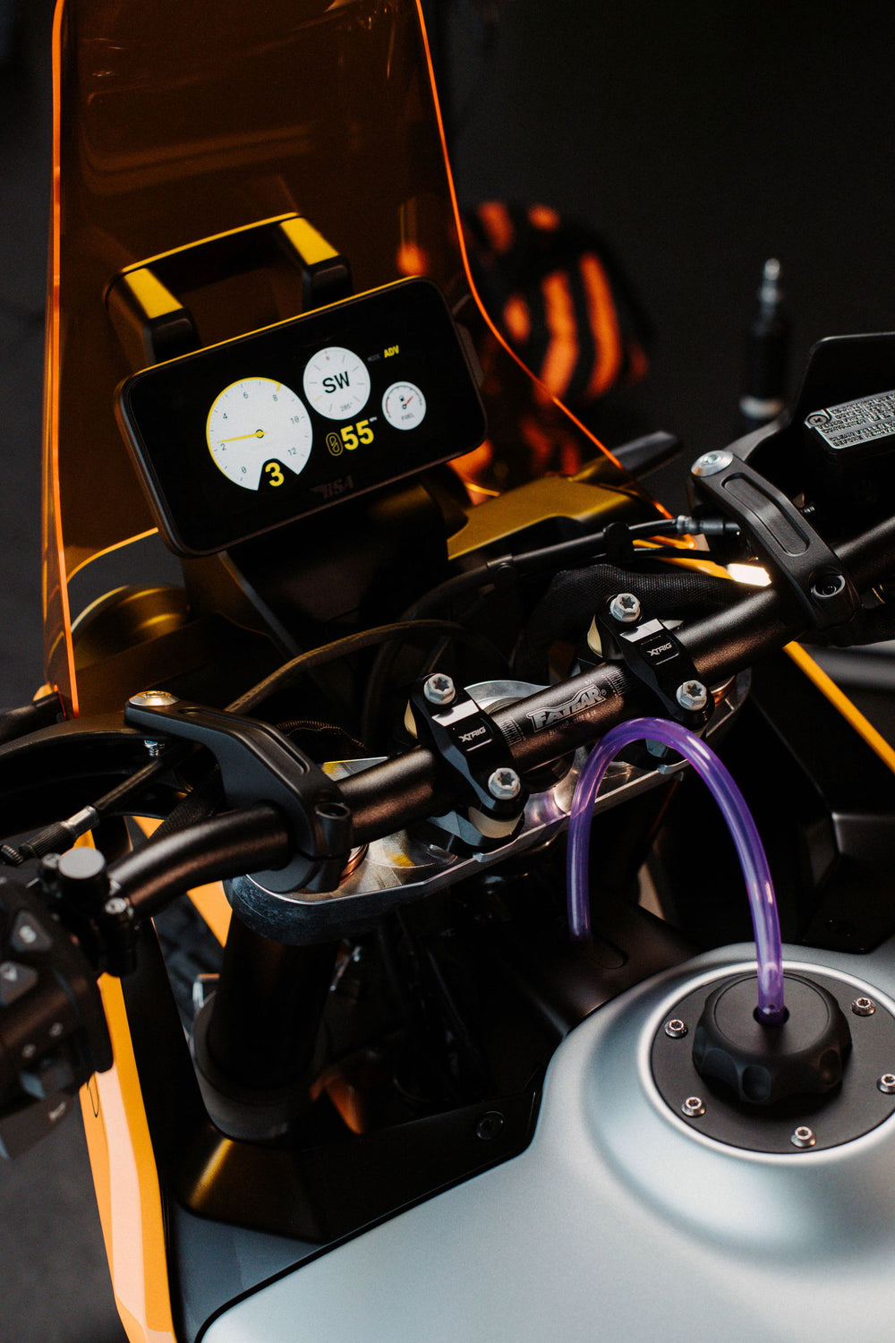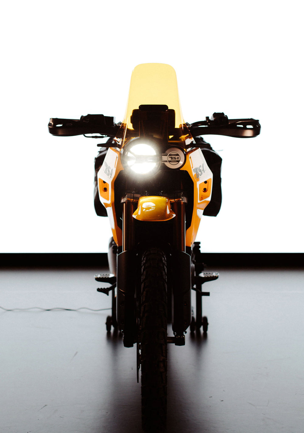 Designet har et robust, rally-inspirert uttrykk med frontnebb og bagasjebærer bak. Den byr på premium traction control, tre ABS-moduser (Rain, Road, Off-Road), forhåndsjusterbar monostøtdemper, slip & assist-clutch og en oppsvingt eksos for bedre vadingsevne i vann.