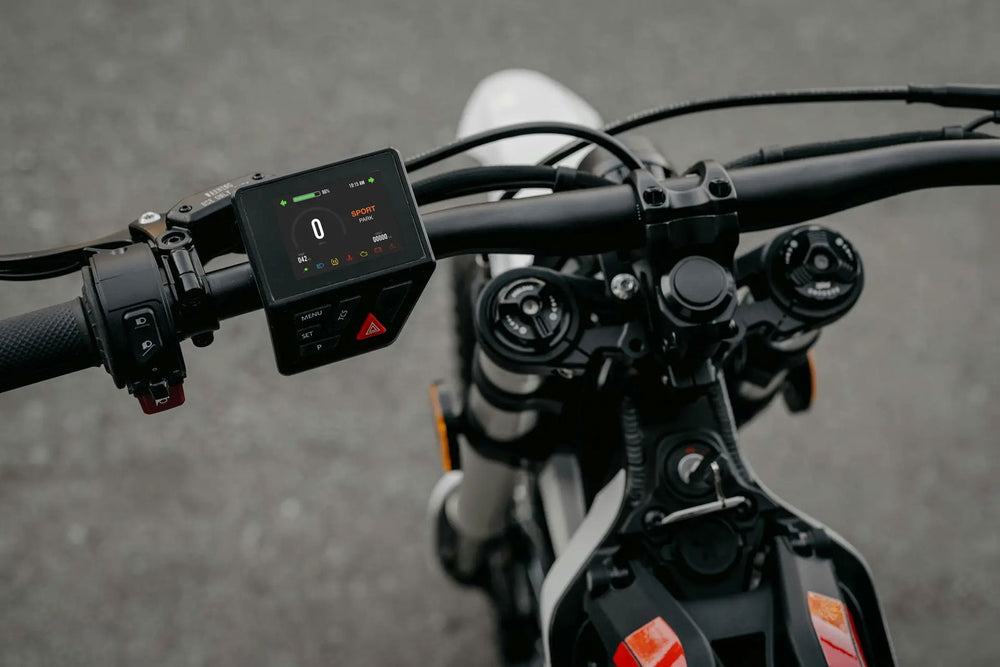 The Zero XB features an impressively compact 2.4” (61mm) full-color TFT dash with 3 factory ride modes (ECO, Standard, and Sport). Take advantage of features like Hill Hold, regen rate adjustments, a tip-over sensor that cuts throttle if you go down, traction control, cruise control, and even reverse - all selectable through the intuitive interface of the dash menu.